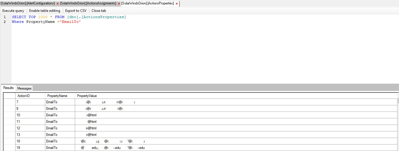 I inherited this SolarWinds environment and it is fairly large. (There are about 1200 unique "send an email/page" actions in Alert Manager)