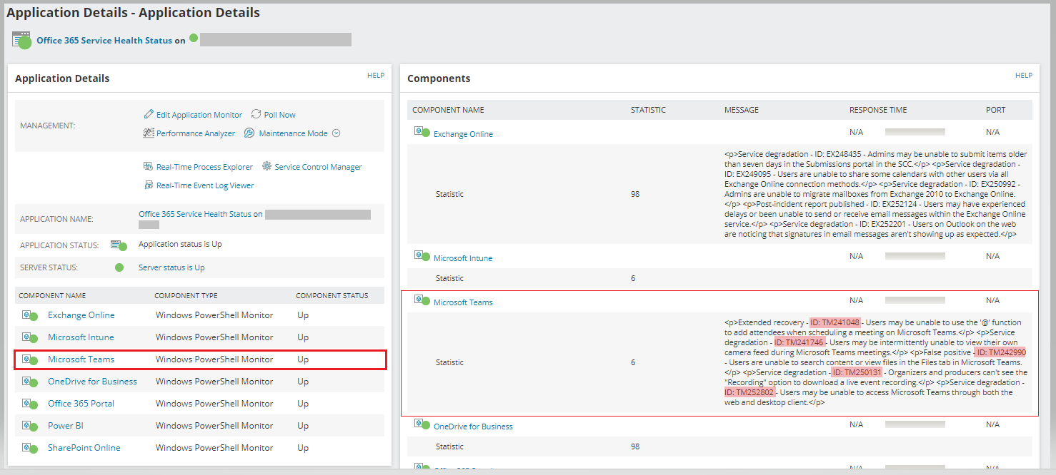 I am new to Thwack as well as Solarwinds, and I need some guidance. I created an Email Alert for O365 Service Health Status. The email alert will trigger when the O365 component status is not equal to 'Up.' Today, we have an issue with MS Teams, and I noticed a service degradation from Microsoft. However, the email alert did not trigger because the component status is 'Up.' I wanted to trigger the email alert whenever a service ID changes. This way, my team will be informed whenever a new service ID is added/subtracted from the component. If you know there is a way to configure the alert based on service ID changes rather than the component status, please guide me. Thank you very much. Please see the screenshot.