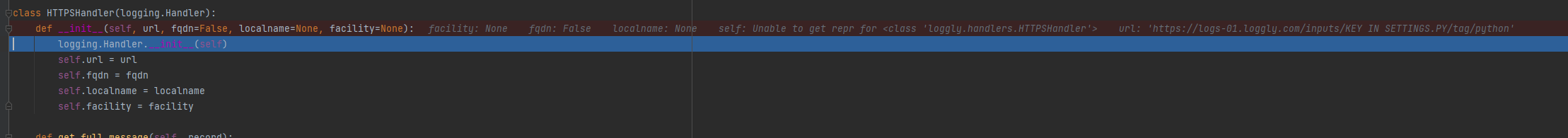 But not seeing any lines in Loggly, even if can see logging working in the console window in pycharm.