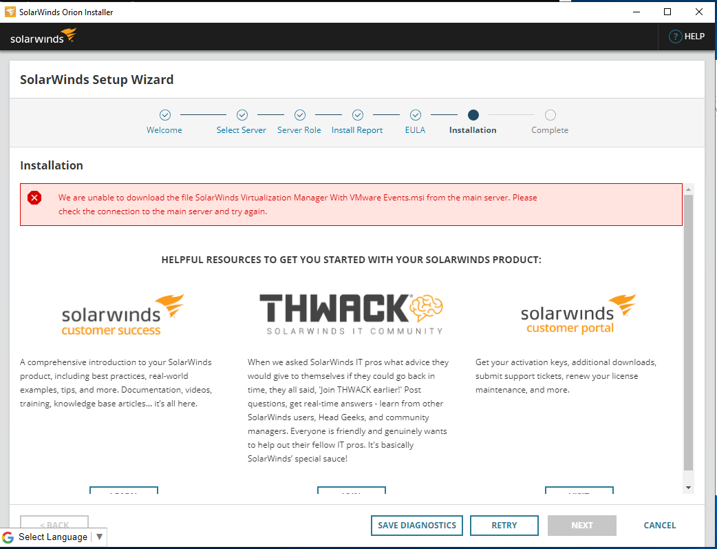 I tried searching the MPE, APE, and the offline installer for the Solarwinds Virtualization Manager with VMWare Events.msi and I cannot find the file anywhere.