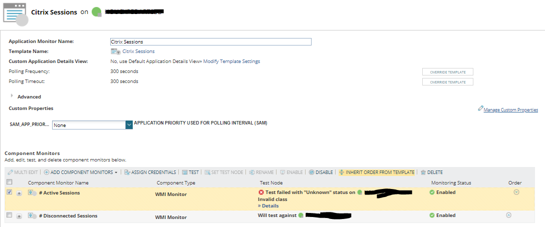 All the servers are passing WMI testing but about 20 of them are not able to monitor Citrix Sessions. It just shows unknown and that its an invalid class Any thoughts?