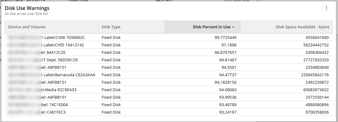 I am starting to play with dashboards. I've found the data I want (which is basically "show me the top 20 most full hard drives on our servers").