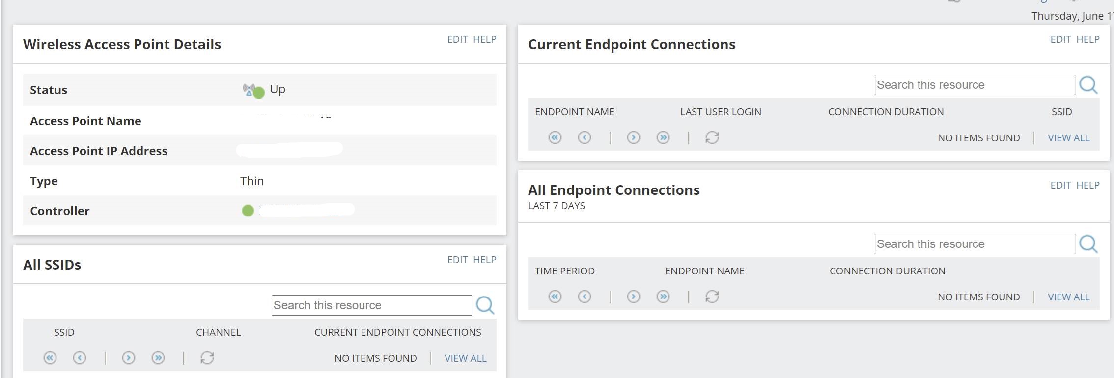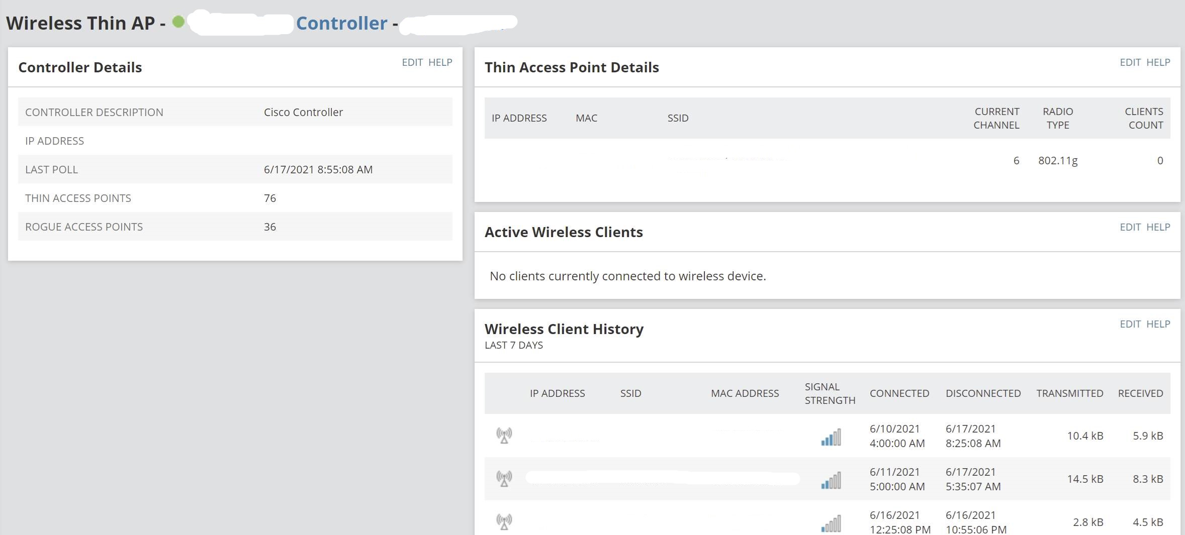 With our Cisco controllers, the thin client info, provides SSID info, client connections, client history, etc.