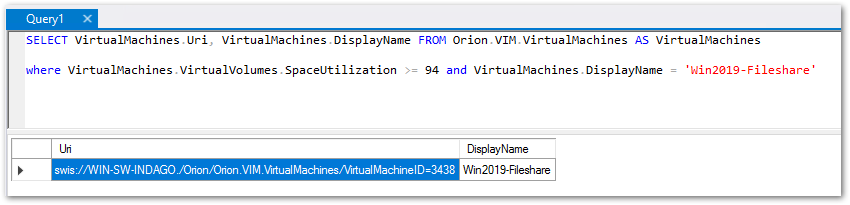 where VirtualMachines.VirtualVolumes.SpaceUtilization >= 94