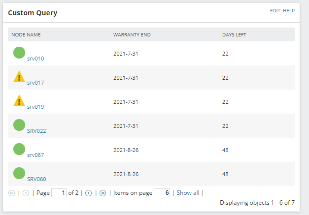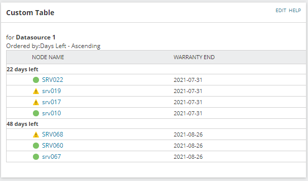 So to keep this brief I am looking for a few ideas on ways I can implement our warranty for servers using Solarwinds and also make a nice little Widget to go alongside it. Unfortunately for me the SAM warranty information polls warranty expiration based on Dell, HP, IBM, etc databases - those databases do not apply for any of the servers we have as they are all managed through a third party.