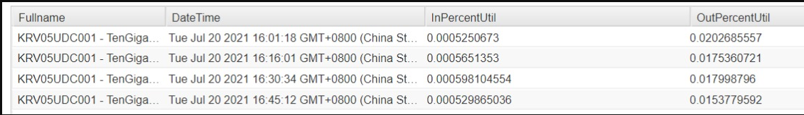 SELECT Top 50 Interfaces.Fullname, DateTime, InterfaceTraffic.InPercentUtil, InterfaceTraffic.OutPercentUtil FROM Orion.NPM.InterfaceTraffic