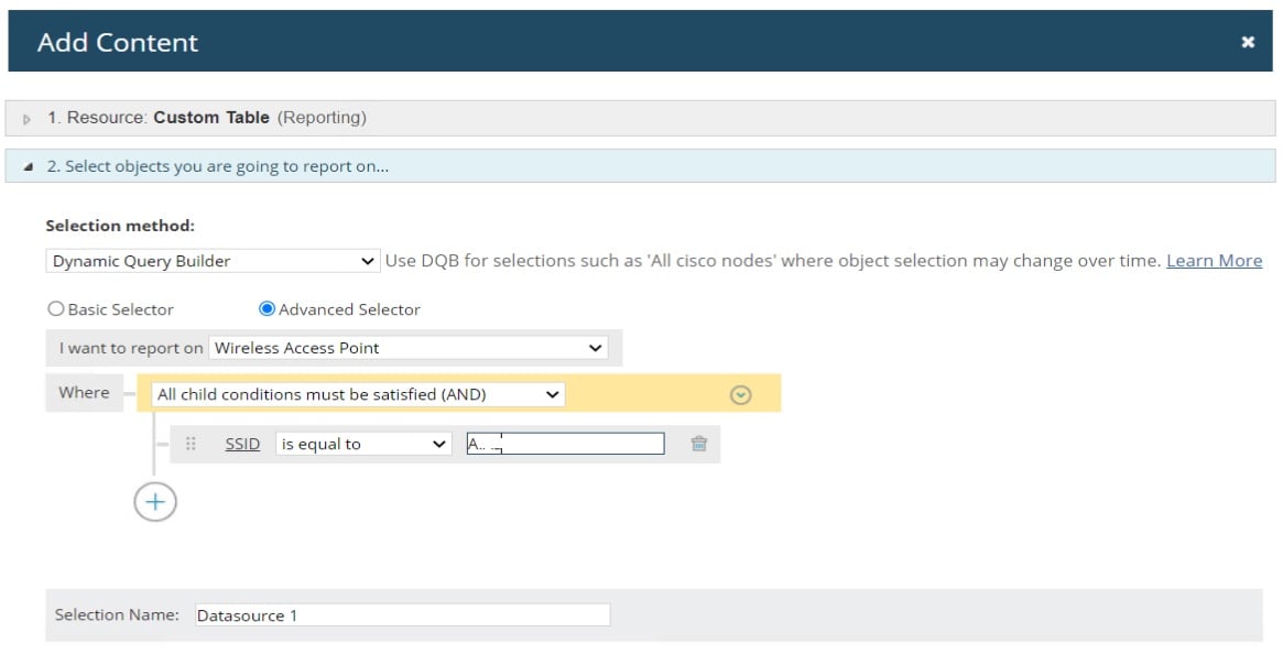 If I choose the resource as History Wireless Clients/Wireless Controllers, it will only let me choose one Access Point, however has the data I exactly want.