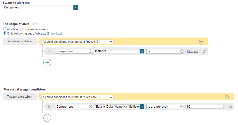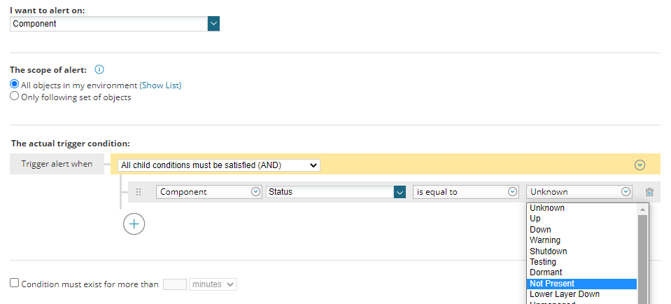 Component Specific values: Some components return specific values, you can alert on this too, but a recommendation would be to use the alert scope to limit to a specific type of component:
