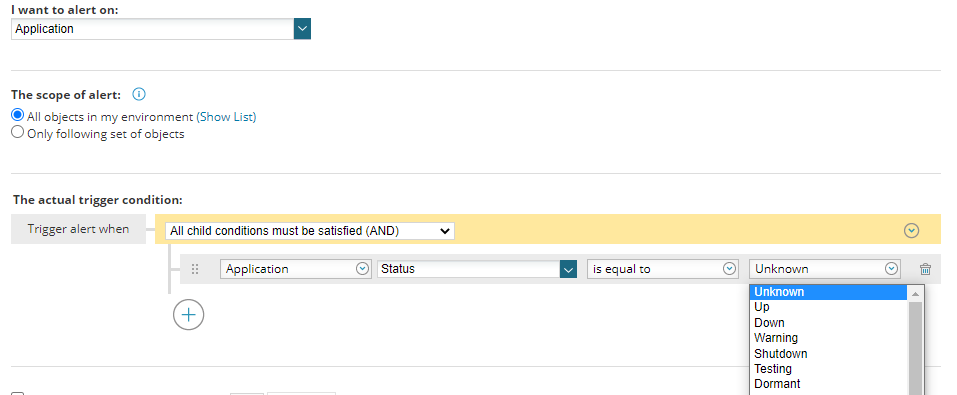 Component/Application status: Both of these elements have Up, Down, Warning, Critical and other statuses that are important, and this is how you would alert on them:
