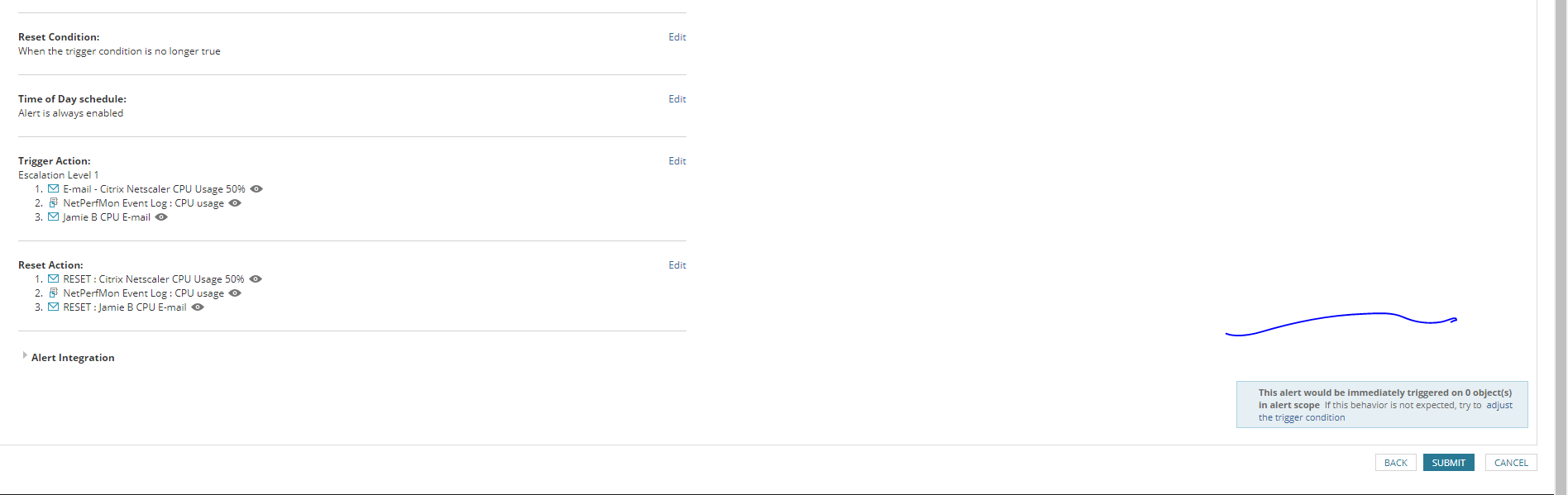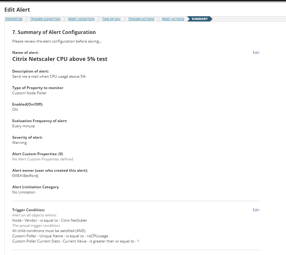 Im trying to set up some threshold cpu alerting for Citrix Netscaler but im not getting any alerts. I have set the threshold to 1% to guarantee getting an alert but still nothing.