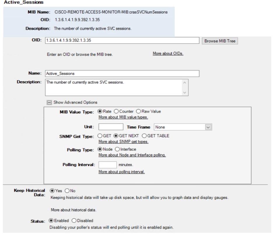 Hi, looking for help on finding logs for a custom poller. We ran in to an issue where SolarWinds does not capture "Remote VPN Active Sessions" count only for a specific device.