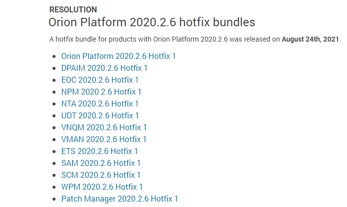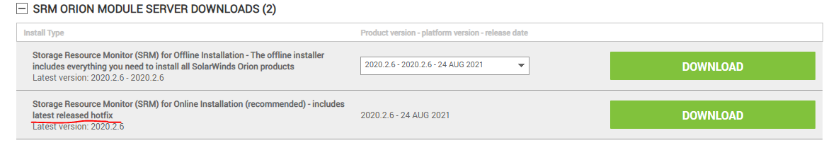 After we received a notification we have applied the HF1 for 2020.2.6 by using Solarwinds-Orion-HotFix-2020.2.6-OfflineInstaller.exe. However the bundle did not include NCM and SRM ,see below. on the download page the NCM has a separate release for the HF with offline installer file option. similarly the SRM has a separate release but do not see the offline installer option.
