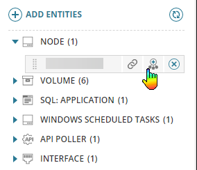 Use 'Add Entities' button at top to manually add objects or click the second button next to an object to add all its related entities into a project for further analysis.