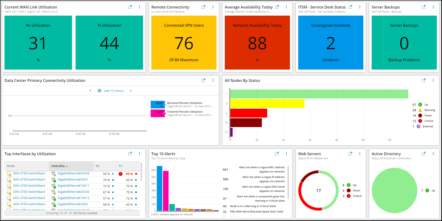 Additional widgets can be added into summary page to provide a quick overview and highlight issues, such as 'top xx' widgets. Just to be minded that Orion has multiple types of pages (views) such as Summary, Node Details, Virtualization, and so there are widgets only available for certain view type.