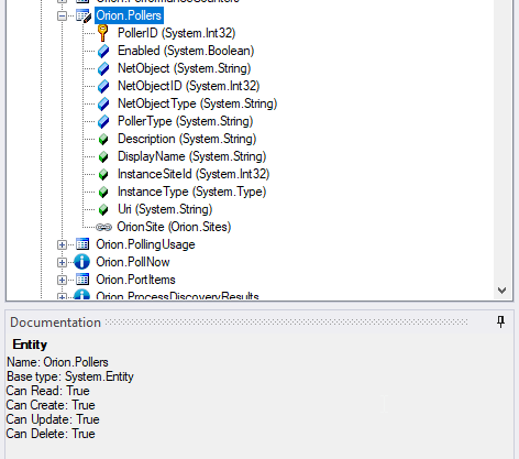 Looking at the Orion.Pollers entity we can see the following are assigned to this node.