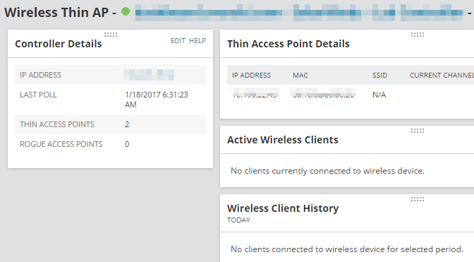 The Meraki organization is now monitored as a wireless controller node. After the first poll, you can see the data from the device in the Orion Web Console.