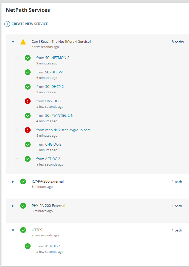I updated the NetPath_Probes table so the AgentID match that in AgentManagement.Agents. Then restarted the Agent on the AST-DC-2. Checking the PLUGINS directory on that server showed that the NetPath plugin files were now installed. Prior to this they were not there. I went into the NetPath services in Orion, removed the broken Probe from the Service, and added two new services using the AST-DC-2 probe. As you can see they are now both working.