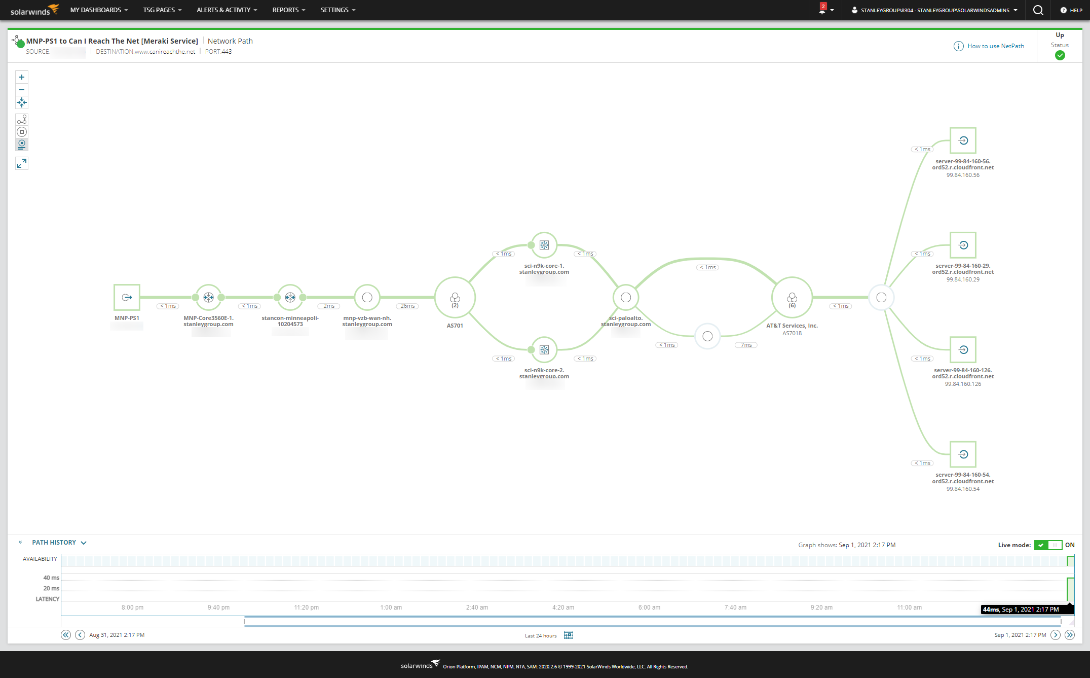 AST-DC-2 probes show the service paths are being monitored.