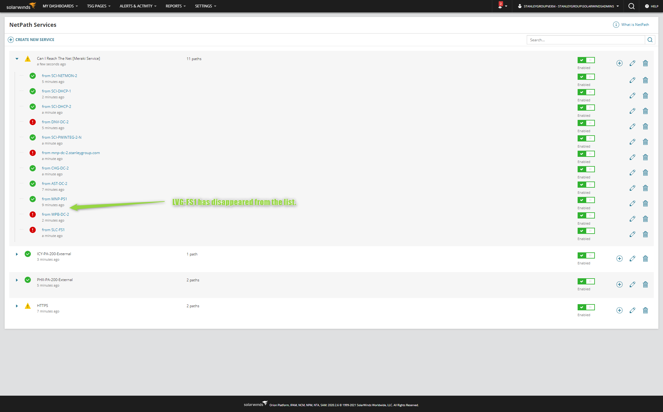 I can see that the NETPATH plugins were added to SLC-FS1 just fine. However, as I have noted previously, they do not appear to even get installed on LVG-FS1 as it has the wrong AgentID in the NetPath_Probes table. Notice that the LVG-FS1 probe persists in the table even though it no longer appears in the NetPath page.