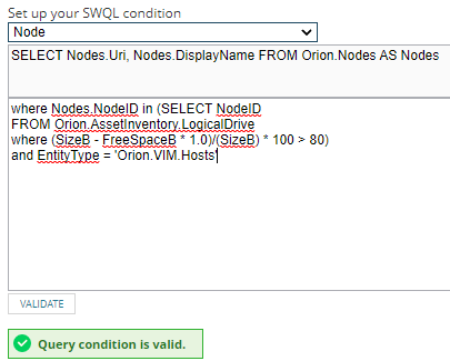 Is there a way to set up an alert on ESX hosts to alert when the logical disk percent available is at a certain threshold? I can see that information on the "Asset Inventory" tab on the ESX details, but I'm unable to find it as an option in the various alert categories. Does anyone know where this is buried in the alert manager?