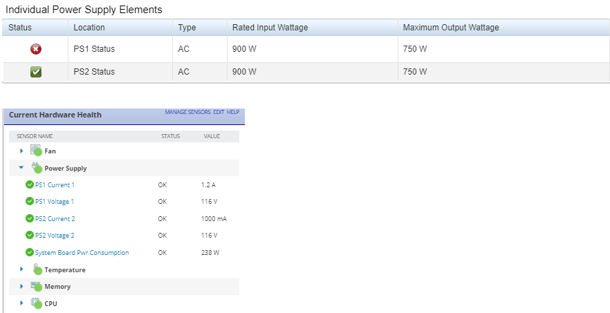 We have a work around in place for the disks but we have examples of power supplies failing and not being caught until someone is physically in front of the server.