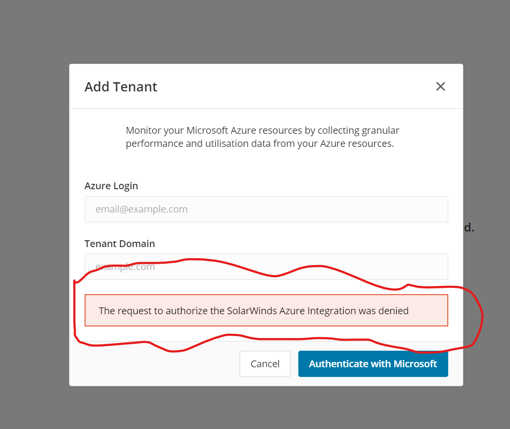 Hi good night, I have and issue when I try to integrate the Azure to Appoptics, dont let me it, I put the information but don't let me access: