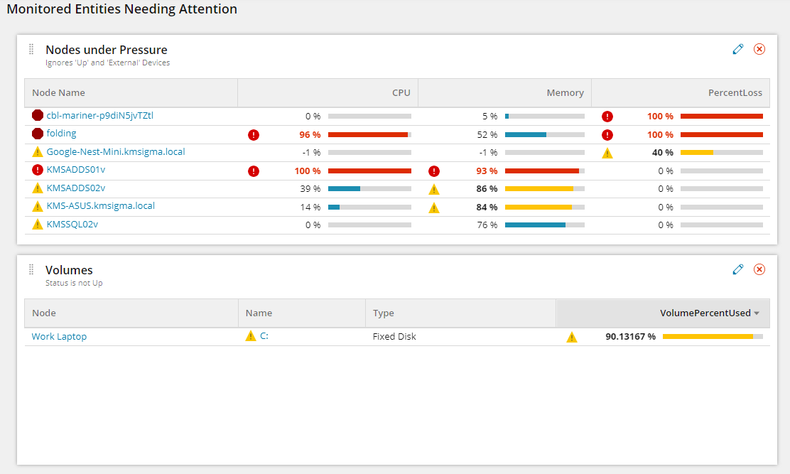 Smart nodes list I imagine multiple widgets for windows servers, Linux servers, Network devices. For items that are in duress and only those items.