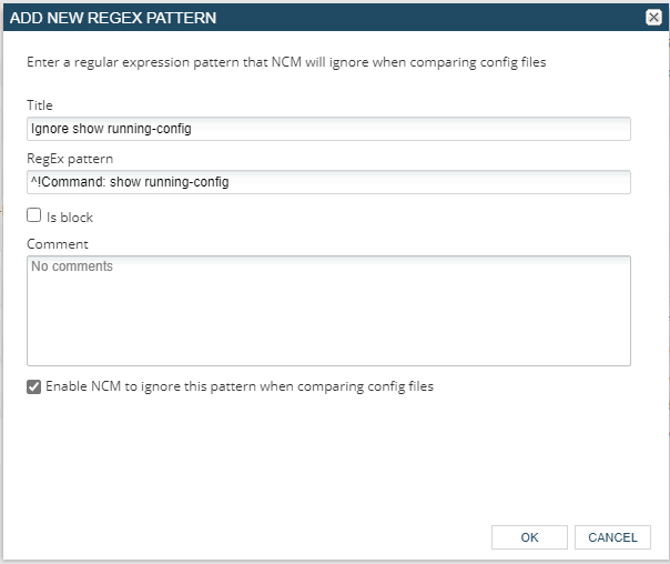08.) Afterwards, put a tick on “Enable NCM to ignore this pattern when comparing config files.”