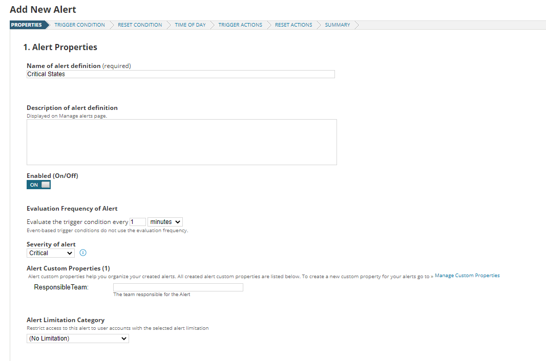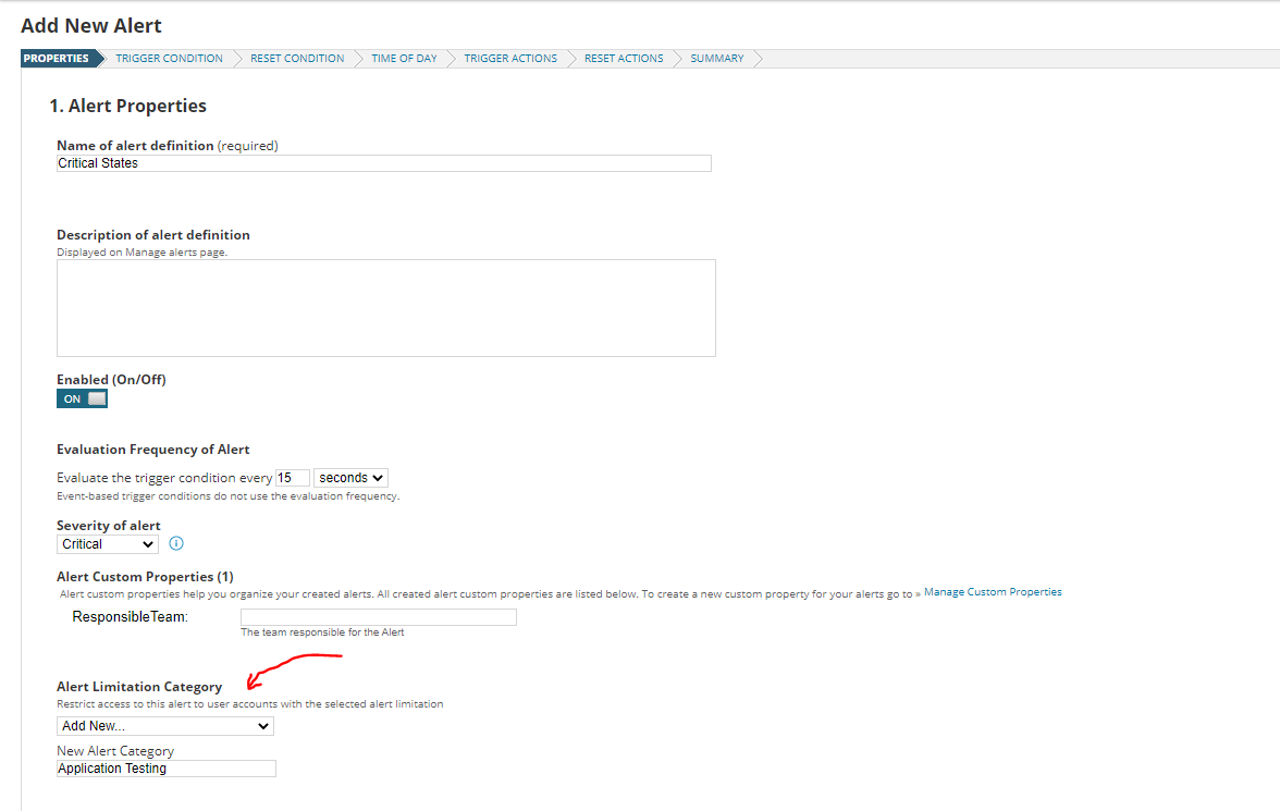 02.) Click on ADD NEW ALERT and configure it as per your requirement. Note that, the default Alerting Interval is 60 seconds. The shortest Alerting Interval is 15 seconds.