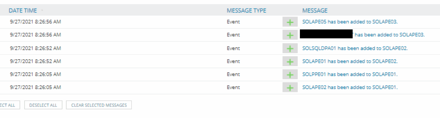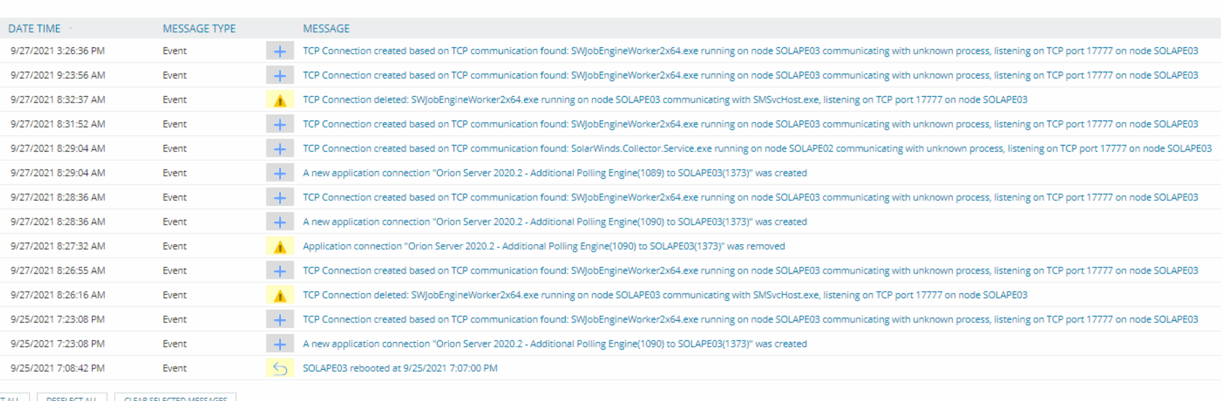 What does the Event (not Audit Event) type "Node Added" signify as it relates to the SolarWinds polling engines themselves. In the screenshot below the Message Center shows several instances of one polling engine being "added" to another one: