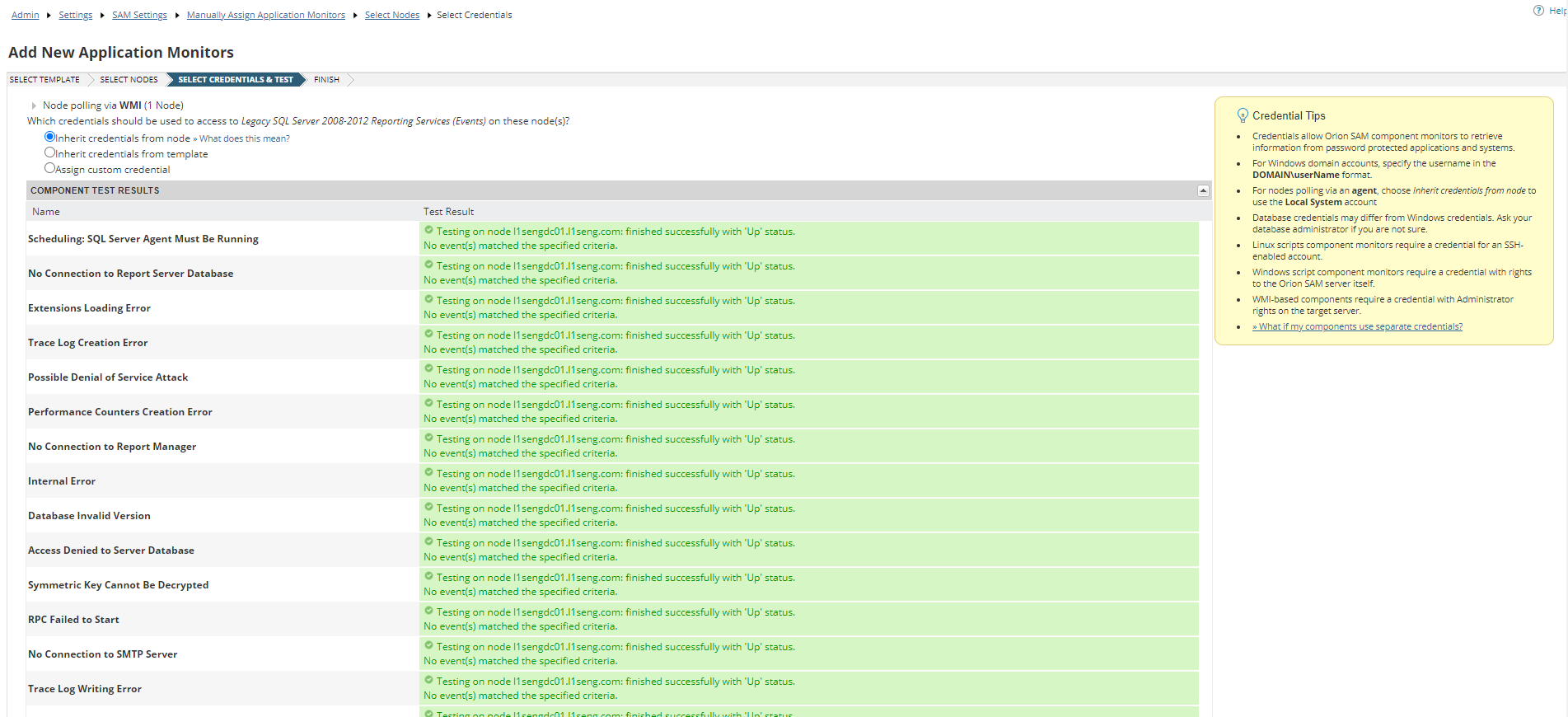 04.) Select the appropriate credentials method and TEST the credentials. (If the test is successful, the results will show as below.)