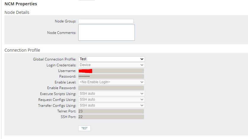 05.) Scroll down and locate the Connection Profile under NCM Properties.