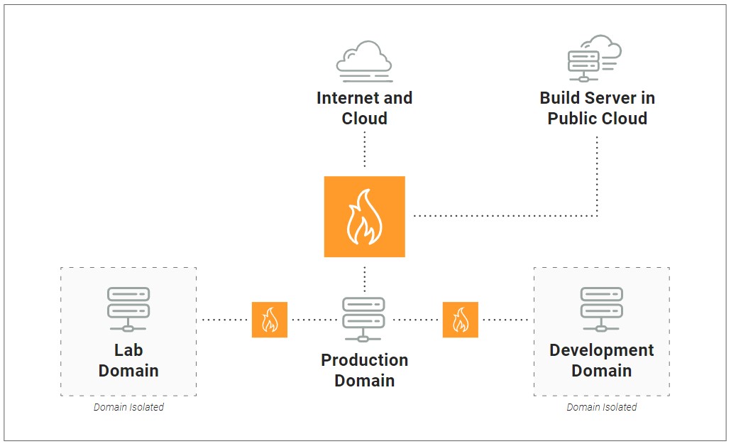 SolarWindsでは、環境を開発、本番、ラボの各ネットワークに分けています。必要に応じて、ユーザはそれぞれの環境内で固有の独立したアカウントを持ち、環境間の接続は制限されています。