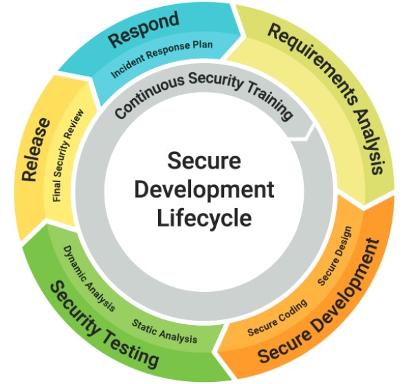 SolarWindsでは、要件分析、セキュアな開発、セキュリティテスト、リリースとその後のインシデント対応など、安全な開発ライフサイクルのアプローチを標準化しました。このプロセスの一環として、Checkmarxによる静的コード解析、WhiteSourceによるオープンソースの発見・解析、Burp SuiteとRapid7 のInsightAppSecによる内部侵入(PEN)テストを行い、その後最終的なセキュリティレビューを実施しています。