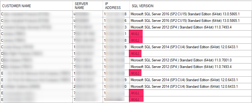 The problem I have now is that the "ComponentMessage" data showing as NULL for several SQL Servers