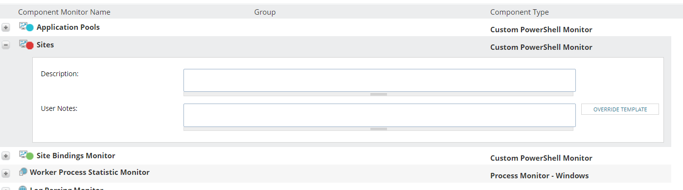 I go to the Apllication Monitor Settings -> AppInsight for IIS -> Component Monitor "Sites" is red