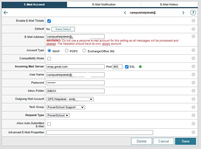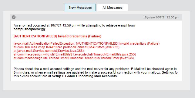 I am running 12.6 - Build #12.6.0.738 and at least once a day I get an error for 1 out of the 3 Incoming Mail Accounts that are all set exactly the same with imap gmail with SSL Port 993 saying Authentication Failed. But the password is entered correctly and it will work most of the day but at random times fail. I have the allow less secure apps setting in Gmail turned on already and the other two gmail accounts never throw this error and have the same settings just a different email address. Here are screenshots of the setup and the error I get. Any help would be appreciated.