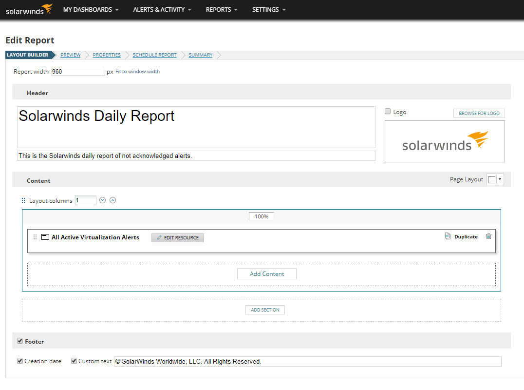 I am trying to configure an automated report generation from solarwinds of the current Alarms, however, as usual, something has to go wrong