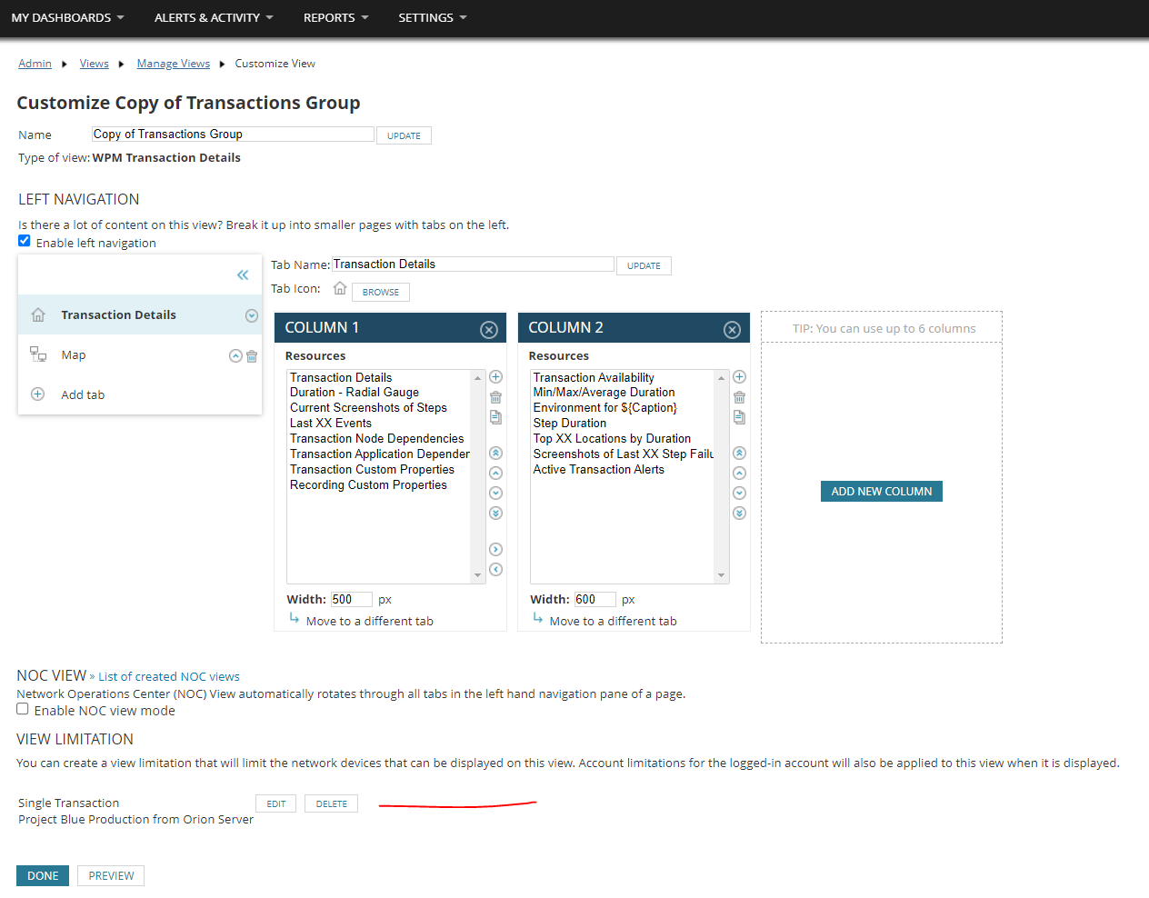 I'm trying to create a customized view for a WPM transaction and i'm limiting the view to just the transaction I want to see as below.