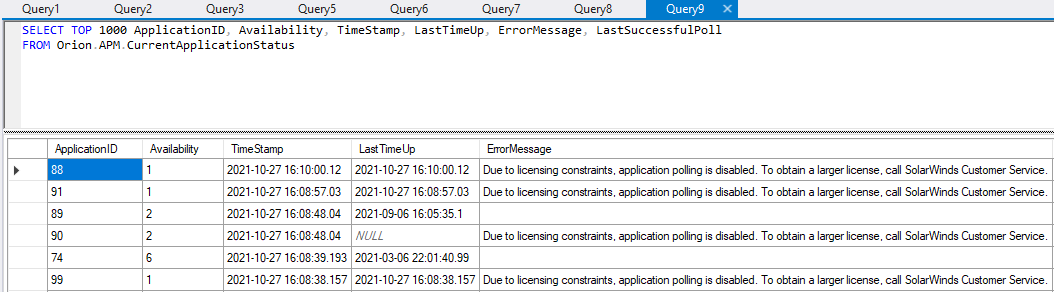 We have some database monitored with AppInsight for SQL and some of them are in unknown status with a message like