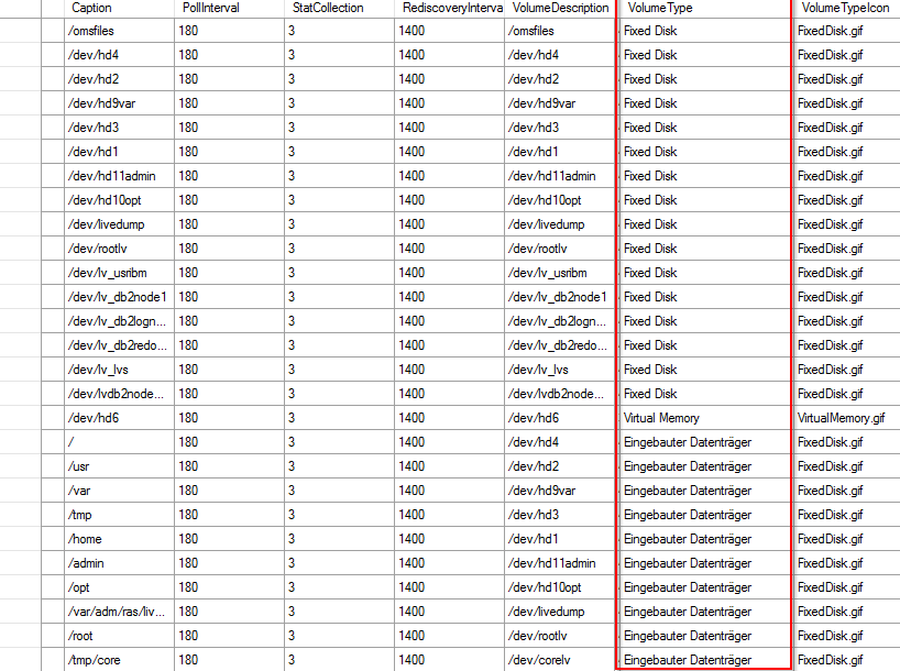 We have some volumes with "Fixed Disk" and some volumes with "Eingebauter Datenträger".