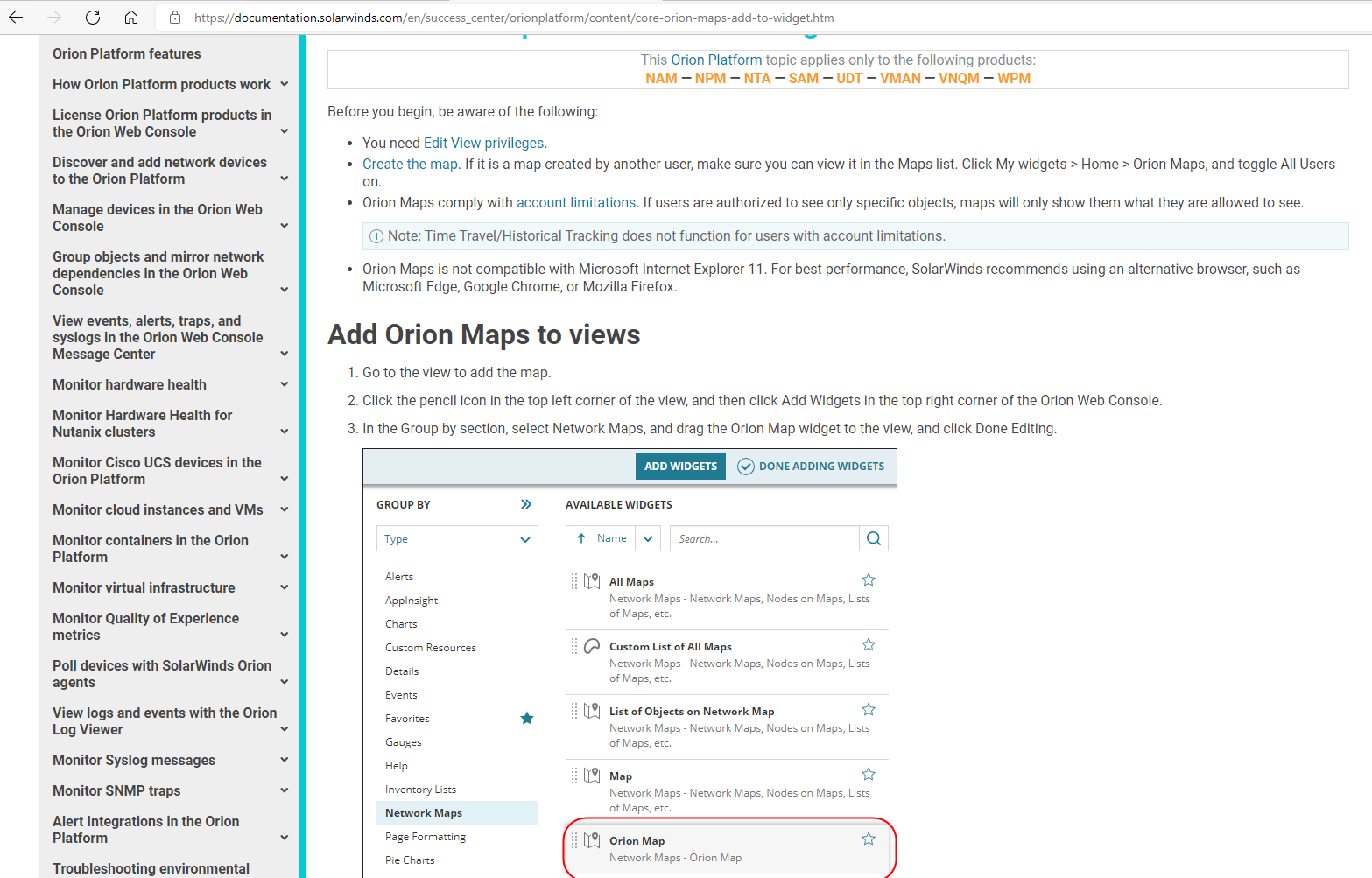 All instructions say to add a maps widget to the dashboard, but I don't have a maps widget (see below). Am I just to assume the new front end doesn't work, and to go back to the network atlas and create a view in there?