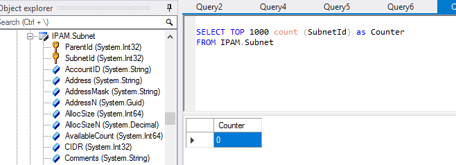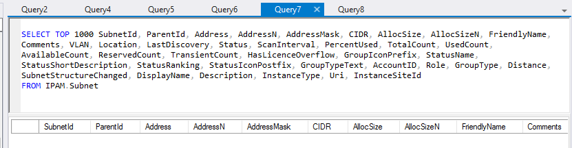 I'm trying to make a very easy SWQL sentence about Subnets in the IPAM module, to get the information related with each subnet.