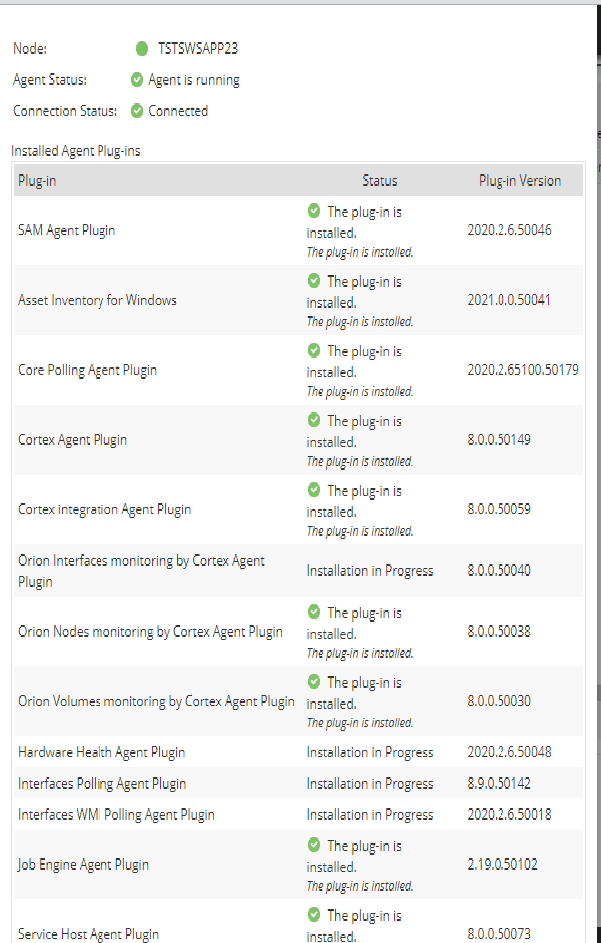 Using VRealize to install agent on new vms with API but has stopped working after recent updates. Now when listing resources the installing agent screen displays and then works. If this manual process is not done all the plugins are never installed and monitoring is not completely setup correctly. This is the point of the automation to no longer need to run manual steps. Any help is appreciated. Opened a ticket with support but was sent to THWACK to get the answer - Case # - 00887421 Since API is not fully supported - Support for Orion SDK and other API-related tools (solarwinds.com)