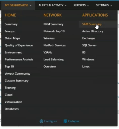 Once Application Discovery Completed. Go to Dashboard Sam Summary.