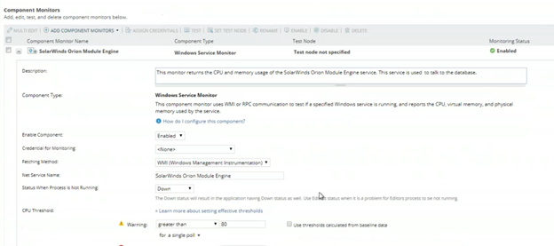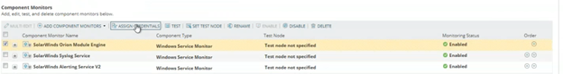 Components Monitors can be Added, Deleted, disabled & Assigned credentials by Clicking the respective buttons.