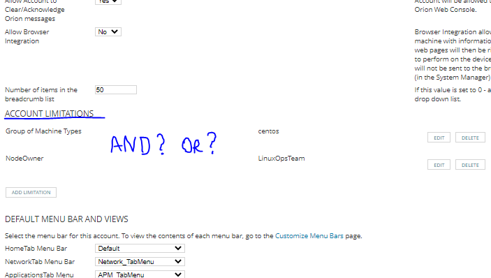 If I set couple of limitations (for example by Machine Type and by NodeOwner) - is here an AND-logic or OR-logic?