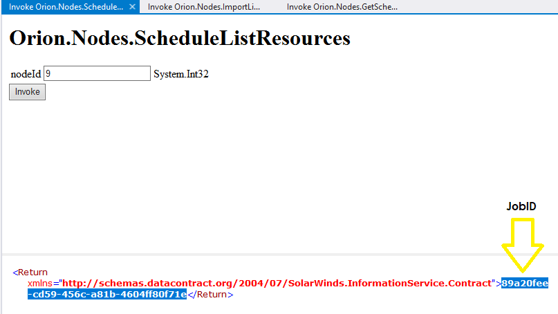 We are using ScheduleListResources for starting. You are entering the Node id and it's give you a Job id.