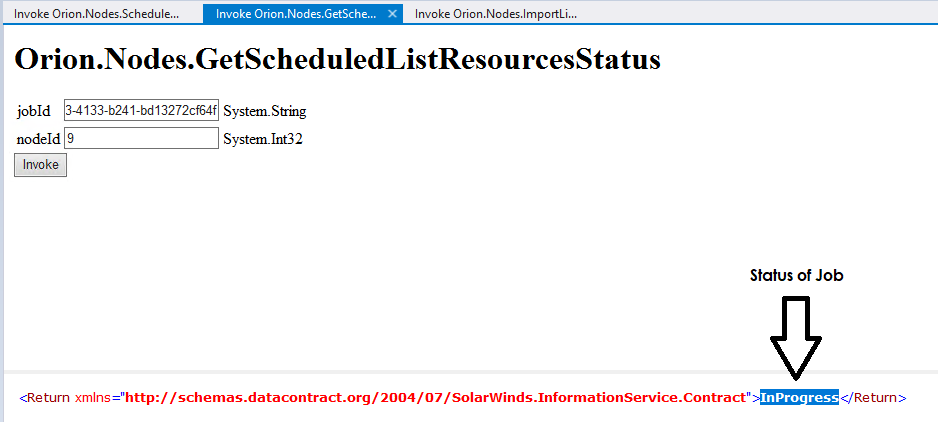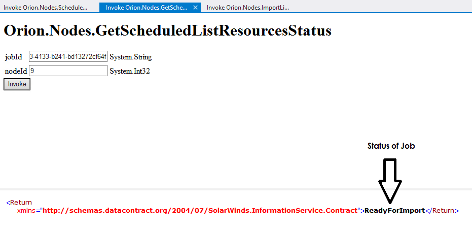 We can see the status of the job with GetScheduledListResourcesStatus function. The status of the job is turning Unknown, after some time it's turning to InProgress and Lastly turning to ReadyForImport.