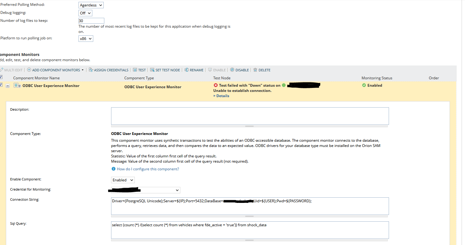 I'm currently working on an ODBC User Experience Monitor Custom Check and I'm running crazy. I want to connect to a PostgreSQL database which is running on a Windows Server 2019 in Azure